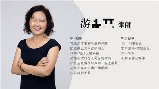 遭縱火送命的游姓女律師相當資深,在高雄執業超過20年,擁有豐富實戰經驗,擅長一般民事、刑案辯護案件,亦擅長婚姻訴訟、家庭糾紛等家事案件。曾任法扶律師、法院調解委員,專長領域包括一般民、刑事、家事、婚姻、少年事件、不動產登記案件等,且同時擁有律師及地政士雙資格,對於處理不動產糾紛相當有經驗。